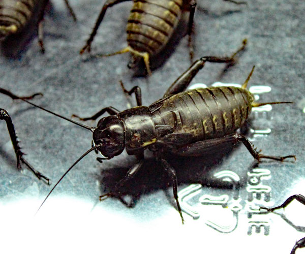 昆虫食の爬虫類に主食として重宝するクロコオロギ(フタホシコオロギ)です。