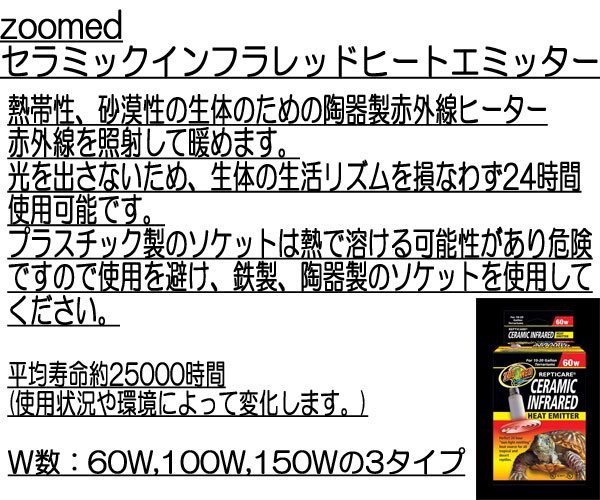 ライトソケットに装着して飼育ケージを保温するセラミックヒーターです。