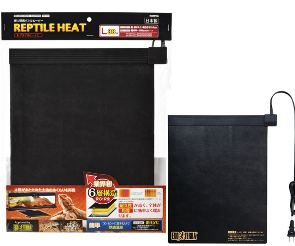 耐久性に優れ熱効率を高めた全体が均等に効率よく暖まる新構造の爬虫類用パネルヒーター。