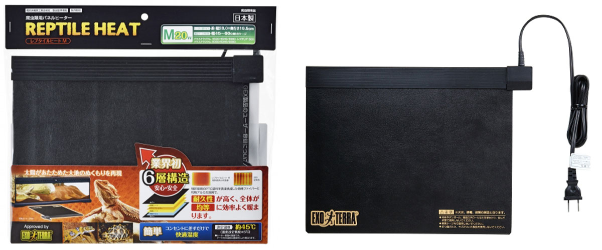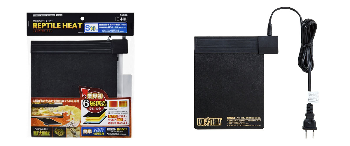 爬虫類を底面から温めるパネルヒーターです。飼育ケージの下に敷いて使用します。