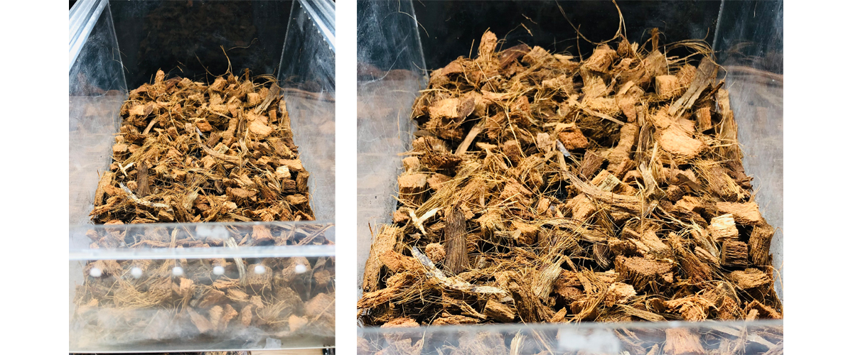 ヤシガラ繊維の床材なので食べても安心な床材です。