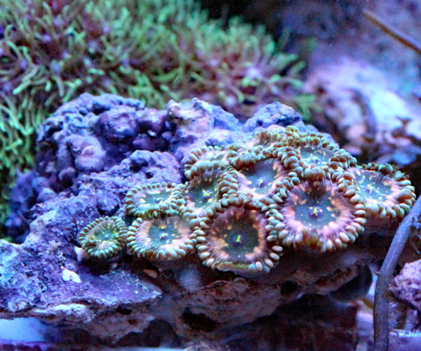 サンゴ用ボンドで小さいライブロックに活着されています。