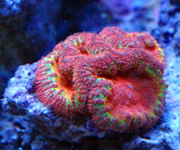 マルチ(レッド、グリーン、ブルー)カラーの美しいカクオオトゲキクメイシです。。