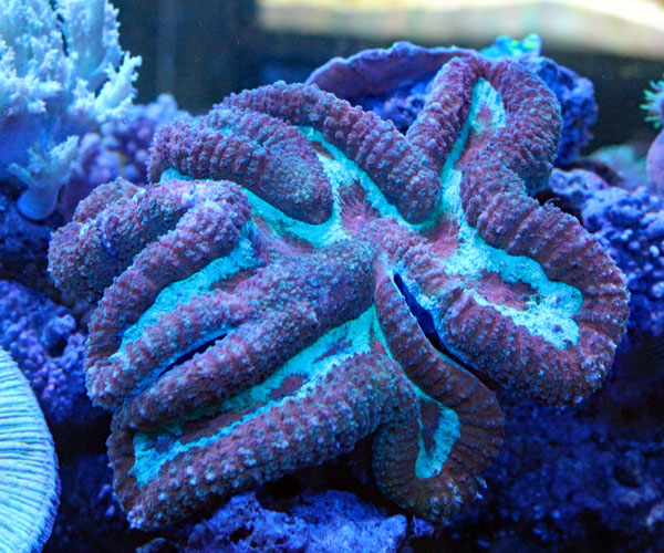 レッド&ブルーカラーの美しいカクオオトゲキクメイシです。。