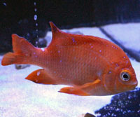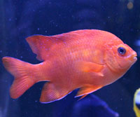 オレンジ色のとても美しいスズメダイです。最大で25?ほどになります。